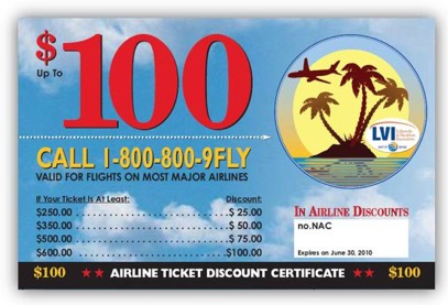 Save up to $100 off the lowest available airfare using most major airlines with few restrictions.