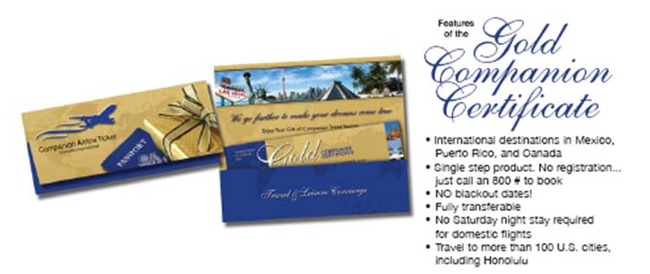 The Free* Companion Gold Ticket entitles the recipient of the certificate to purchase one adult round-trip,